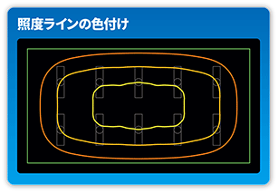照度ライン設定を任意に行うことで、照度ごとにわかりやすく色分けすることができます。